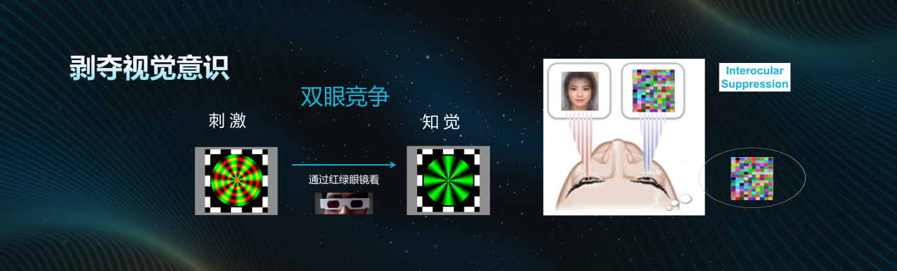 意识有多重要,有什么意义?一个有效的方法就是研究“没有意识的情况下,我们能做什么”。“盲视”现象为此提供了有力证据。一些因视觉皮层损伤而宣称自己看不见的病人,却能在无视觉意识的情况下,精准完成投递信件或规避障碍等任务。他们的行为表明,在没有视觉意识的情况下,仍然能够利用视觉信息来引导他的行动。 在实验室中,研究者通过“双眼竞争”方法,将不同的图像(如一张面孔和一副动态噪音图)分别呈现给被试的左右眼,使其对其中一幅图像(如面孔)产生“看不见”的知觉状态。然而,研究发现,这些被主观意识“屏蔽”的面孔信息,其基本属性(如朝向与表情)仍能在脑内获得相当程度的无意识加工。更引人注目的是,一个完全“看不见”的人像仍能像“幽灵”般吸引空间注意,并且这种注意的定向效应并非随机,而是系统地受到被试自身性别与性取向的调节,揭示了社会性信息在无意识层面的高效处理。