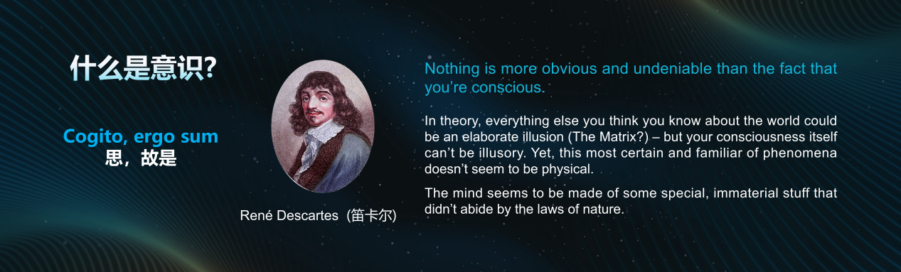 什么是意识? 它源于何处? 这或许是科学界面临的最深刻也最迷人的问题之一。笛卡尔曾言“我思故我在”,便将意识的存在视为了最不容置疑的思辨基点。然而,从科学的角度定义意识却异常困难。哲学家约翰·塞尔就将其描述为“从无梦的睡眠醒来之后,除非再次入睡或进入无意识状态,否则在白天持续进行的,知觉、感觉或觉察的状态”,神经科学家克里斯托夫·科赫则更诗意地称之为“意识,就是你的体验”。尽管意识没有特别清楚的定义,但我们每个人似乎脑子里面也知道它是什么,那么,意识究竟有多重要?