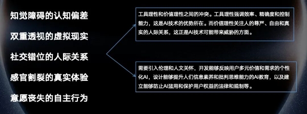 今年人工智能(AI)再度成为“热词”。政府工作报告不仅 3 次提到人工智能,更首次提出了开展“人工智能+”行动。人工智能技术如狂潮般汹涌澎湃,它正在重塑人类的生产生活,从简单任务到复杂任务,甚至是不可能的任务,AI正逐步实现跨越。清华大学新闻学院元宇宙文化实验室主任沈阳,提出了“镜像进化论”这一独到观点,让我们得以一窥AI的发展轨迹,与人类进化相反,从模拟意识到生命,再到空间,这一反差令人深思,也为我们提供了宝贵的启示。 清华大学新闻学院元宇宙文化实验室主任沈阳发表《从AI哲学到AI应用》的演讲 镜像进化论 我们可以看到,图像大模型的演进,大约每四个月就会有一次迭代更新,展现出了惊人的速度。相较之下,人类的进化历程则显得悠远而漫长。我们逐步理解宇宙,从探索其起源开始,生命逐渐诞生,进而演化出高等生物,甚至可能发展出意识。这是一个漫长而有序的进化过程。 然而,AI的发展路径似乎与此相反。AI首先模拟的是意识,然后构建一个仿佛活生生的生命体。这种生命体具有成长和进化的特性,给人一种生动且活跃的感觉。最终,AI模拟的是一个空间,类似于我们常讨论的元宇宙,即三维化的空间互联网或空间计算。因此,AI的进化逻辑与宇宙的进化呈现出一种镜像关系,即AI的进化方向与宇宙的进化方向相反。 我将这种思考称为“镜像进化论”。基于这一理论,我们可以预见AI未来的发展趋势。它将逐渐展现出更强的主体性,最终可能演化出智能生命体,即我们常提及的AI Agent。这是一个值得深入研究和期待的领域。 随着苹果公司Vision Pro设备的日益普及,我们将借助AI技术构建三维化空间。这种空间可与现实空间相融合,形成混合现实,亦可独立于现实空间存在。近期,我们观察到美国有部分用户佩戴Vision Pro头盔行走于街头,缺乏与他人的交流。这实际上是一种空间上的隔离,即社会隔离。 我们之前所讨论的,是我们对AI哲学中“镜像进化论”的一种理解。从通用的角度来看,AI主要有三种作用:再创、拟真、异感。首先,AI能够对我们以往所做的一切进行再创。例如,我们让AI重新撰写一篇已完成的小说或文章,或者重新绘制一幅画作。这既是对人类脑力劳动的再现,也可能带来一定程度的提升。 其次,AI被用于模拟真实世界。尽管当前的AI在模拟真实世界方面还存在一些局限性,但随着具身智能的发展,机器人和自动驾驶等应用将能够学习并了解我们周围的一切知识。在达到极致的情况下,AI甚至可能像牛顿一样,发现物理世界中人类以前未知的新规则。 最后,AI能够创造一个全新的、人类以前难以想象的世界。例如,我们可能会用AI创作出半人虎或半人鳄鱼等异感世界中的生物。这些创作超出了我们的想象范围,但AI却能轻松实现。 用1%的人类智慧来激活AI 99%的劳动 AI的进步为人类带来了前所未有的效率提升,同时也让我们拥有了更多的闲暇时间。无论是自动生成文字、图像等简单任务,还是自动驾驶、医疗诊断等复杂任务,甚至是科幻场景的创作,AI都展现出了惊人的实力。 AI创作大赛: 在2023年10月16日,我们利用AI技术创作了一篇约6000字的科幻小说,从标题、正文、笔名、大纲到配图,全程均由AI独立完成。随后,该作品参加了人类的科幻小说大赛。在六位评委中,有一位评委敏锐地察觉到这篇小说的AI创作痕迹,因此他对此作品持保留态度,不愿意将其授予奖项。然而,其他五位评委中有三位认为该小说具备获奖资格。最终,根据比赛规则,该小说荣获二等奖。这一成就不仅在2023年成为中国科幻界的十大事件之一,也引起了中国文学界的广泛关注。 近期,我们与到访清华大学的美国教授进行了深入的学术交流。有教授对我们这部AI创作的小说产生了浓厚的兴趣,希望能了解更多关于其创作过程的信息。为此,我们将我与AI之间的66次对话记录整理并发布在微信公众号“清新研究”上,供感兴趣的读者下载阅读。通过这些对话,读者可以深入了解我们是如何引导AI生成这部小说的。 值得注意的是,虽然AI能够独立完成创作,但其作品往往难以达到我们期望的效果。因此,我提倡“用1%的人类智慧来激活AI 99%的劳动”的理念。这一理念旨在强调人类在AI创作过程中的重要作用,实现人与AI之间的和谐共生。从这个角度看,人与机器、人与AI之间的关系可以视为“天、人、人工智能三合一”,简称“天人智一”。这一概念可以理解为“天人合一”思想的升级版,强调人类与AI的相互融合与共同发展。 AI的进步 关于AI的优势,我们已有所探讨。然而,AI同样存在一些问题,其中一个显著的问题被称为“AI幻觉”,即AI可能会产生误导性的结果。 诡异的手: 以我个人经历为例,我曾尝试使用AI将我19岁时的照片与我爱人19岁时的照片合成一张合影。这两张照片都未经过任何美颜处理,只是进行了高清处理。然而,当我们将这两张照片通过AI合成时,却发现合成结果中出现了一只不明来源的手,这显然是不合理的。另外,在另一张合成照片中,我爱人的右手被错误地绘制成了六根手指,这也是一个典型的AI幻觉现象。 值得注意的是,随着时间的推移,AI幻觉的问题似乎有所改善。在2023年4月份,AI在手部描画方面出现幻觉的比例较高。然而,到了2024年2月份,根据我们的观察和使用经验,AI出现幻觉的比例已经降低到大约20%至30%。这意味着在大多数情况下,AI的
