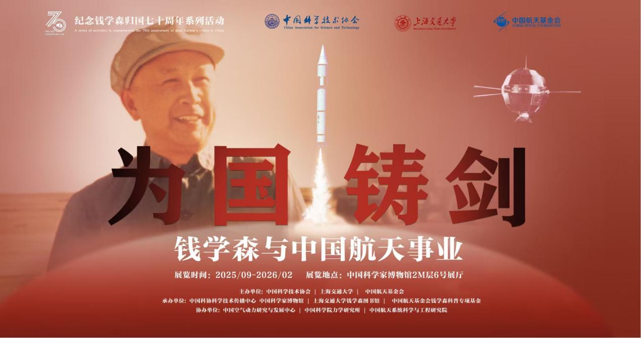 钱学森是中国航天事业的奠基人、“两弹一星功勋奖章”获得者、“国家杰出贡献科学家”荣誉称号唯一获得者。1955年9月17日,他冲破重重阻碍,携家人搭乘“克利夫兰总统号”启程归国,义无反顾投身新中国的国防科技事业和社会主义建设。 为纪念人民科学家钱学森归国七十周年,2025年9月17日,“纪念人民科学家钱学森归国七十周年”系列活动暨航天公益三十周年纪念活动在中国科学家博物馆举行。中国科协党组副书记、副主席、书记处书记冯身洪,国家国防科技工业局党组成员、副局长卞志刚,上海交通大学党委书记杨振斌出席活动并致辞。钱学森之子、钱学森图书馆馆长钱永刚,特级航天员费俊龙,以及钱学森书屋代表、陕西宁强县实验小学校长刘久亮作主题分享,分别从不同视角分享了钱学森精神的传承与创新实践。同时,由中国科学技术协会、上海交通大学、中国航天基金会联合主办的“为国铸剑:钱学森与中国航天事业”在活动现场正式启幕。 展览选取上海交通大学钱学森图书馆馆藏70余幅照片、近80件(套)实物展品,通过“战略规划 奠基伟业”“八年四弹 剑指苍穹”“两弹结合 大漠惊雷”“鹰击长空 化剑为盾”“星耀东方 曙光初现”“系统工程 走向未来”六个单元,真实再现了钱学森在党的领导下为中国航天和国防科技事业作出的卓越贡献,全面呈现他从毅然归国到主持“两弹一星”研制的奋斗历程,深刻诠释他“党有所呼、我有所应,国有所需、我有所为”的崇高精神风范。 活动同期还举办了航天公益三十周年杰出贡献纪念杯颁授仪式以及“纪念钱学森归国七十周年”座谈会。 |